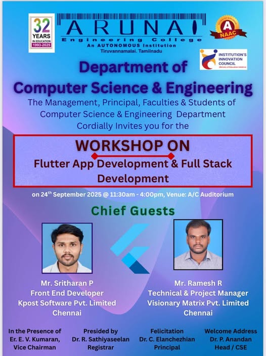 Workshop on Flutter App Development & Full Stack Development